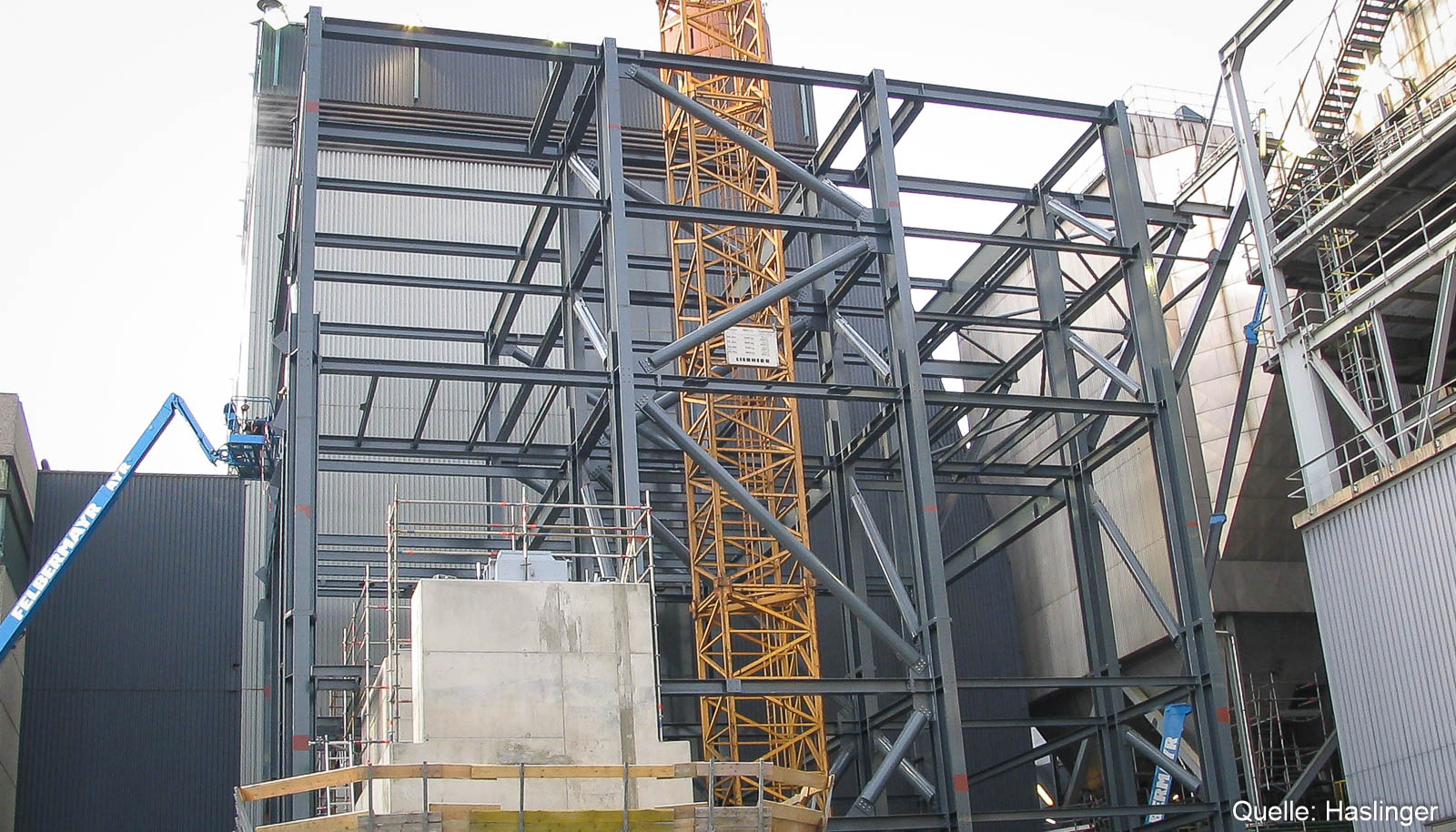 HASLINGER STAHLBAU wurde mit der Fertigung, Lieferung und Montage des "Kalten Stahlbaus" beauftragt. Zur Ausführung gelangten schwere Tragkonstruktionen für Elektrofilter, Kondensatoren und Kühlluftgebläse sowie diverse Bühnenkonstruktionen und Treppentürme. Mehr als 120 t Verstärkungskonstruktionen wurden unter schwierigen Baustellenbedingungen in den Ostanlagen manuell montiert.