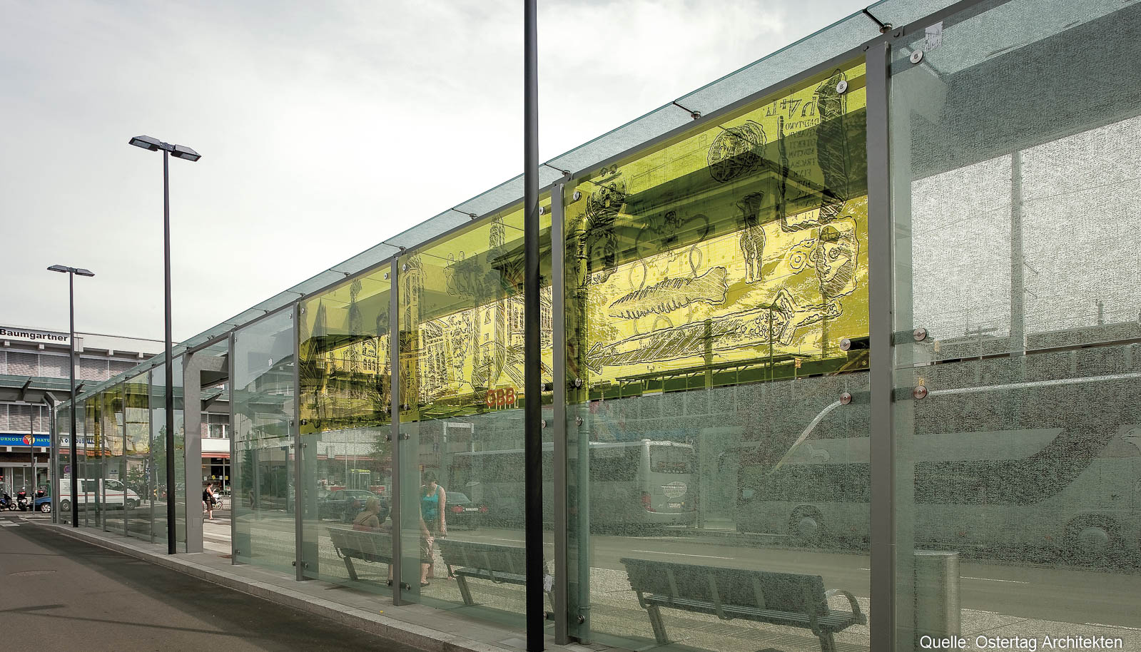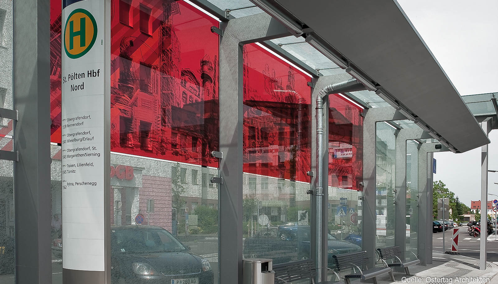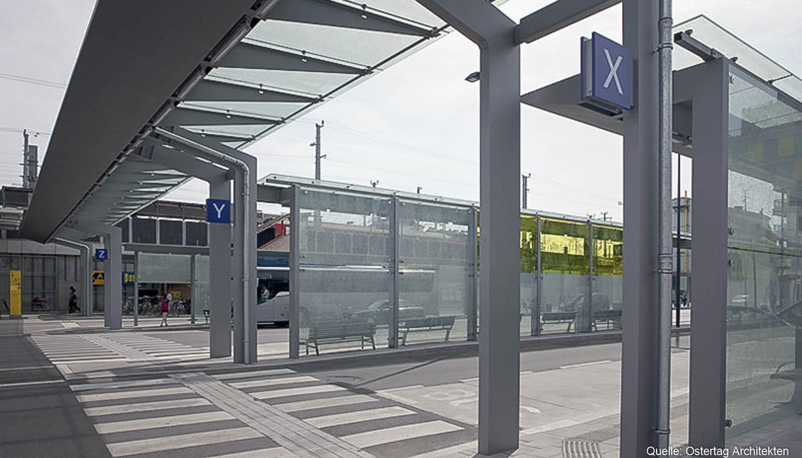 Am Vorplatz Nord (Gewerkschaftsplatz) wurde der neue Busterminal durch Stahl-Glaskonstruktionen von HASLINGER STAHLBAU überdacht.