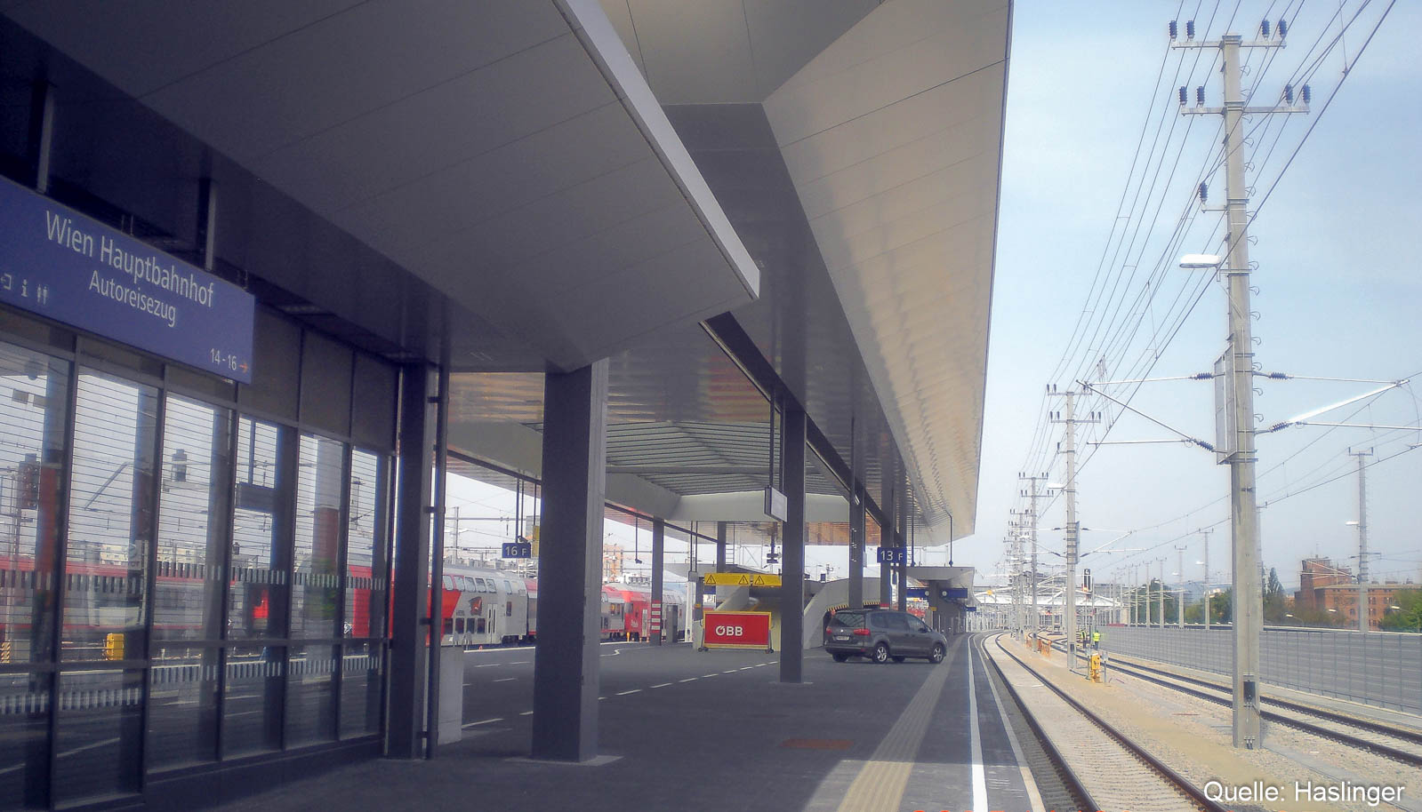 Im Zuges des Projekts "Wien Hauptbahnhof" wurde der alte Wiener Südbahnhof - ein Kopfbahnhof im 10. Wiener Gemeindebezirk - durch einen neu zu errichtenden Durchgangsbahnhof ersetzt. Für die Anlage "Auto im Reisezug" wurde ein Inselbahnsteig gebaut.