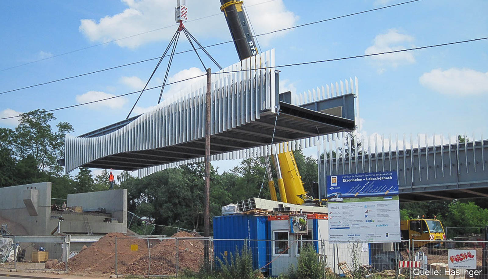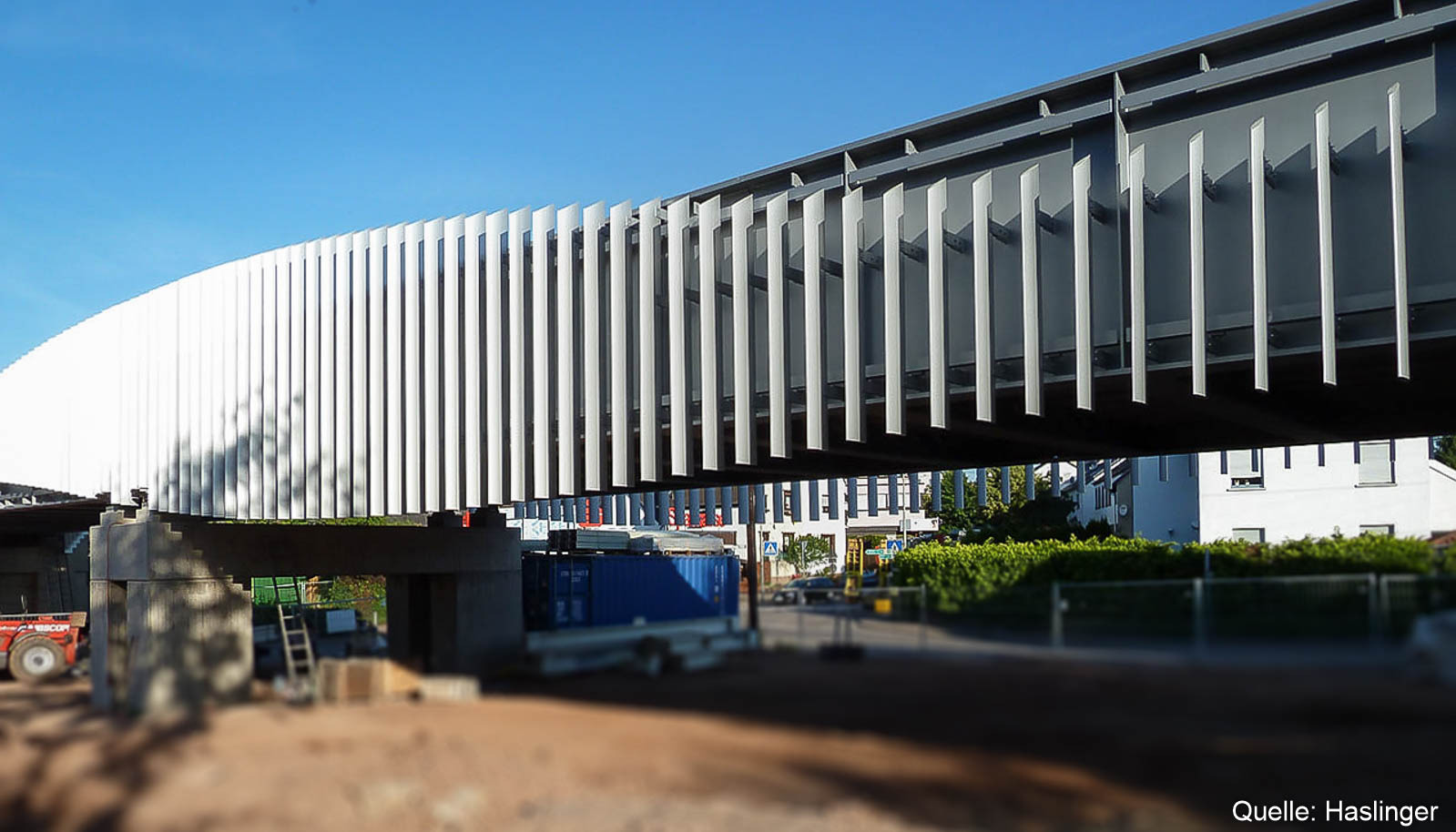 Im Zuge der Erweiterung der Köllertalstrecke errichtete HASLINGER STAHLBAU für die Stadtbahn Saar GmbH ein 2-feldriges Trogtragwerk in Walpershofen, einem Ort nahe der deutsch-französischen Grenze im Saarland.