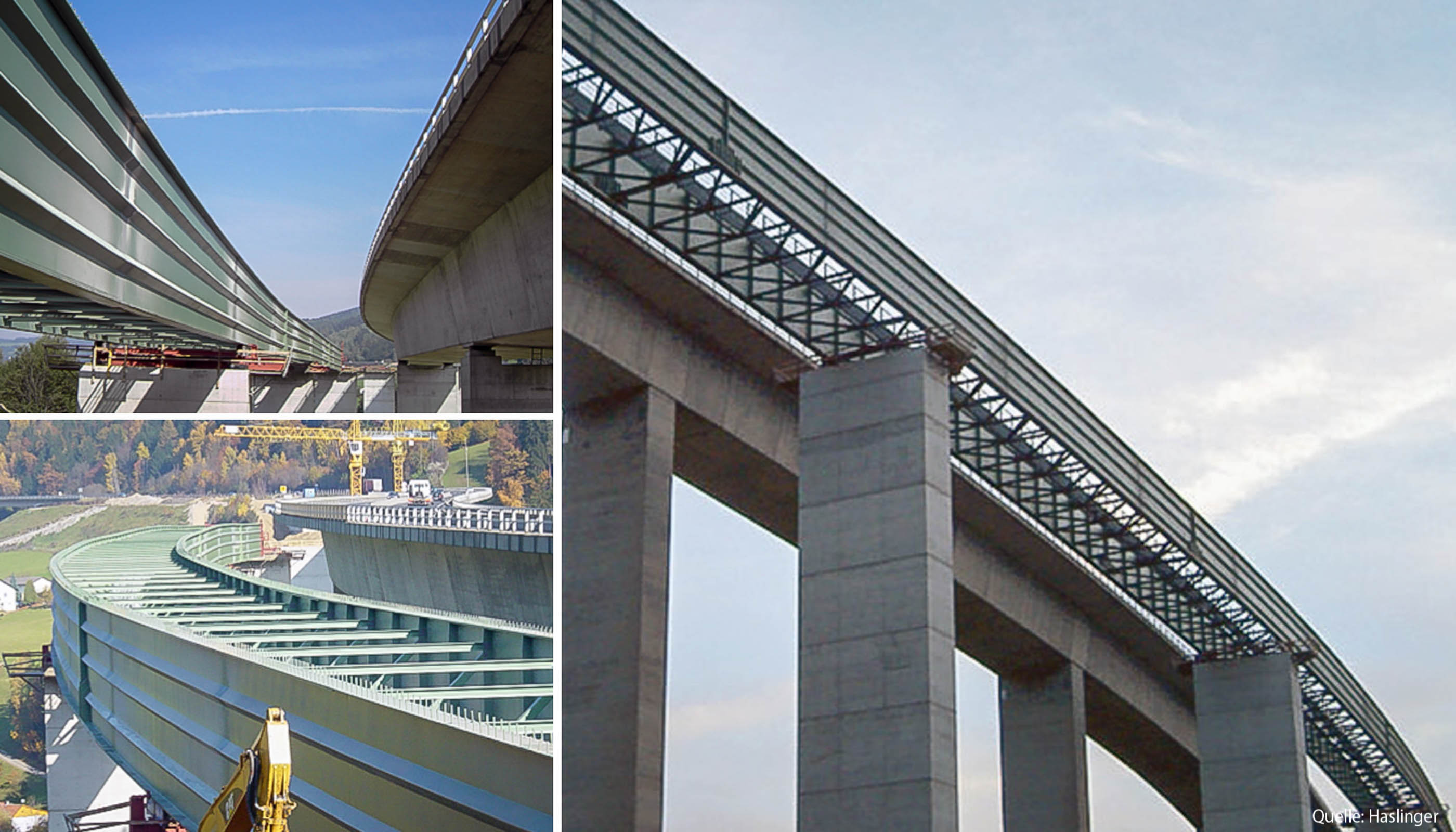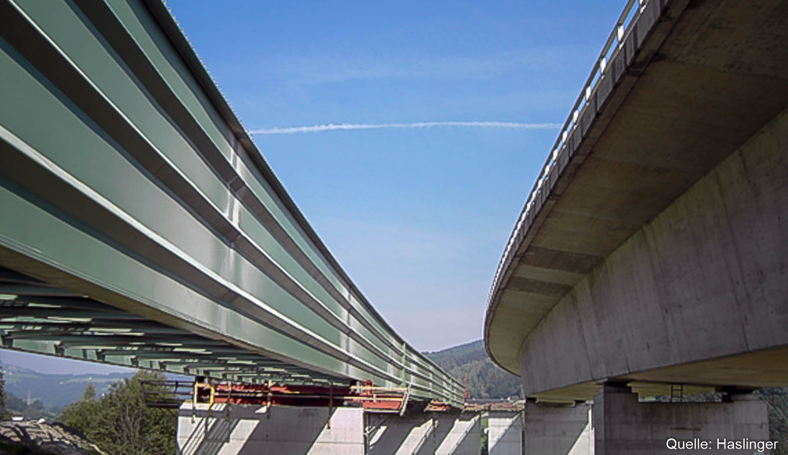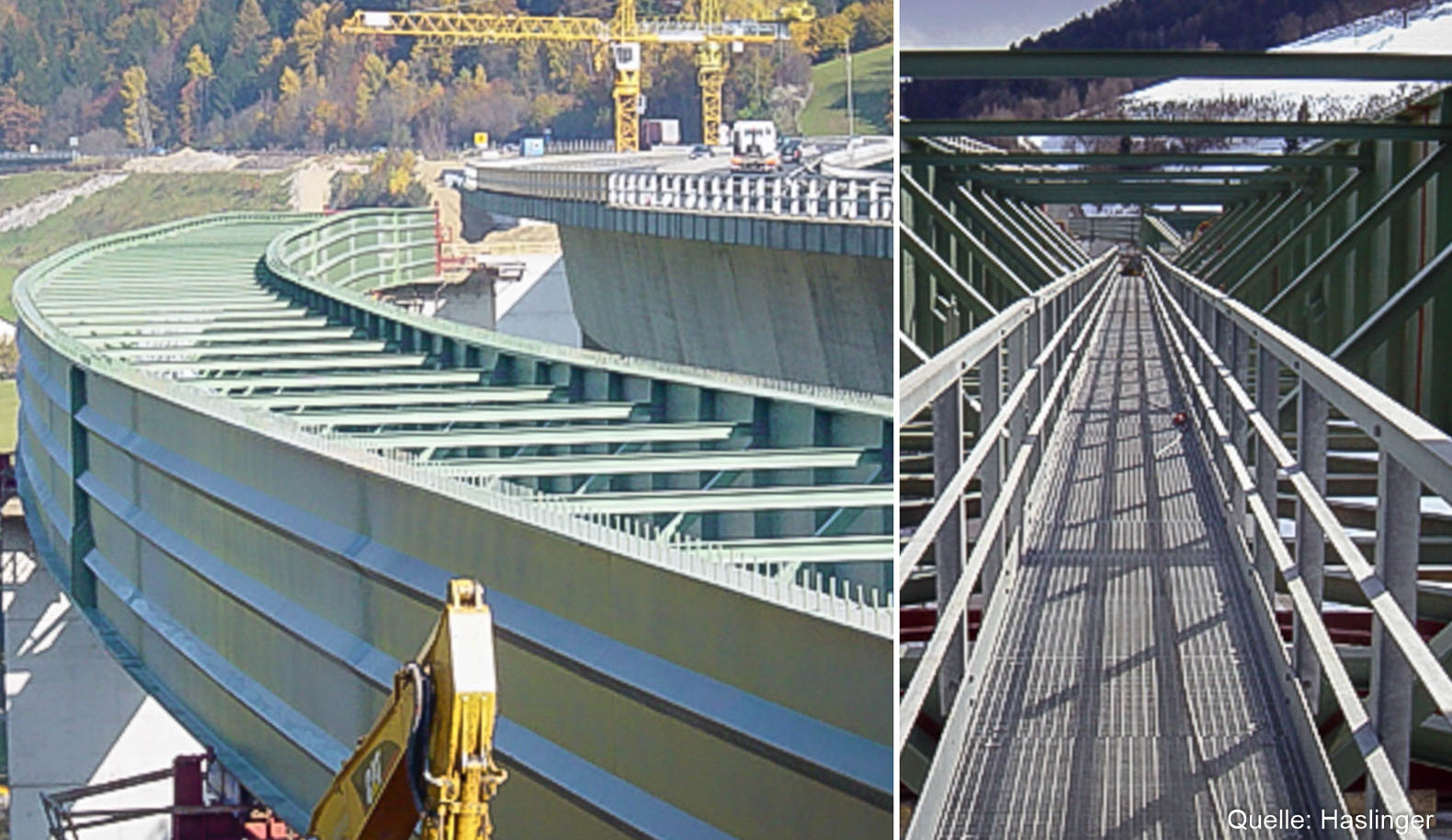 Das langjährige Stahlbau-Knowhow von HASLINGER STAHLBAU im Brückenbau floss auch in die Errichtung zweier neuer Übergänge beim Ausbau der A2/Südautobahn über die Pack ein.