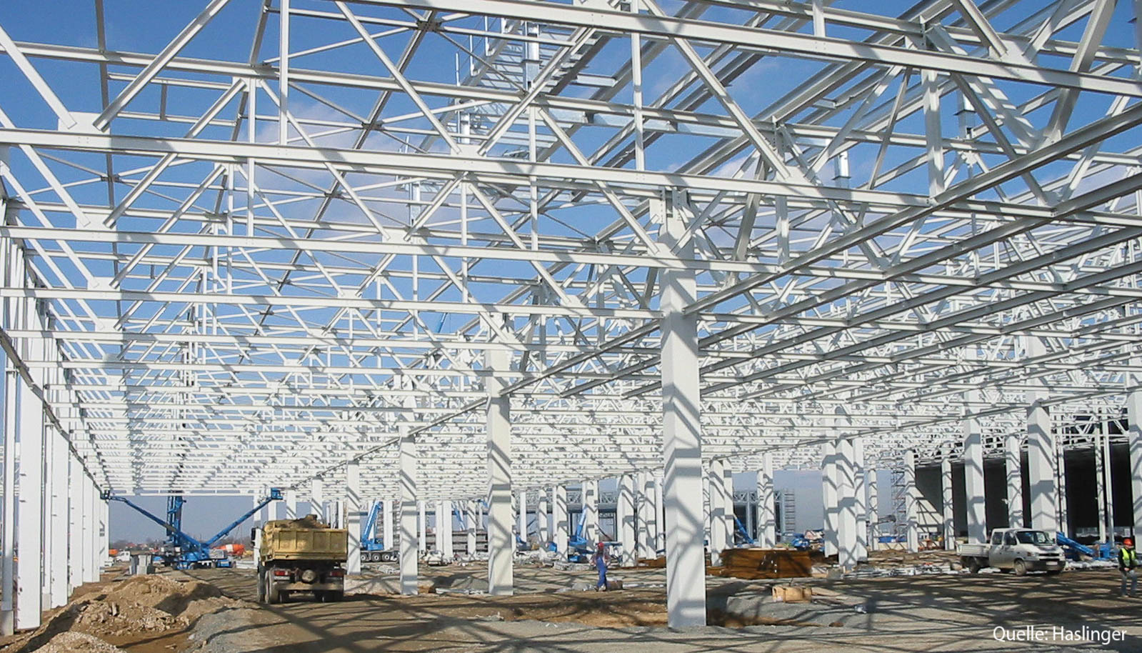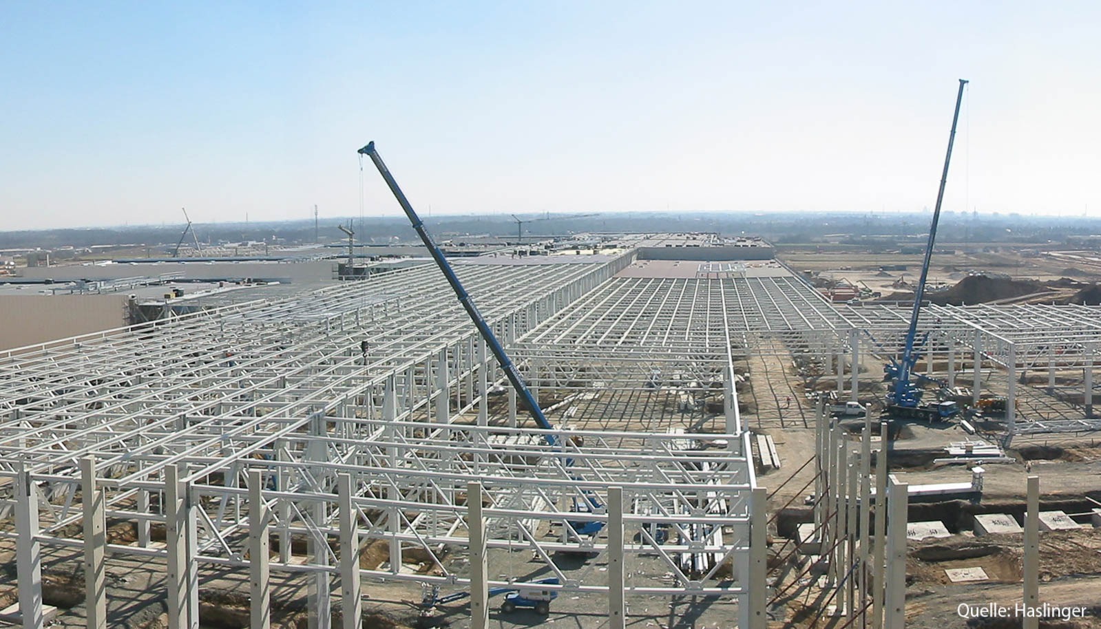 Aufgrund der kurzen Bauzeit und des vielfältigen Anforderungsprofils entschied sich der Bauherr für eine Stahlhalle. BMW vertraute beim Neubau des Leipziger Werks auf die langjährige Erfahrung von HASLINGER STAHLBAU.