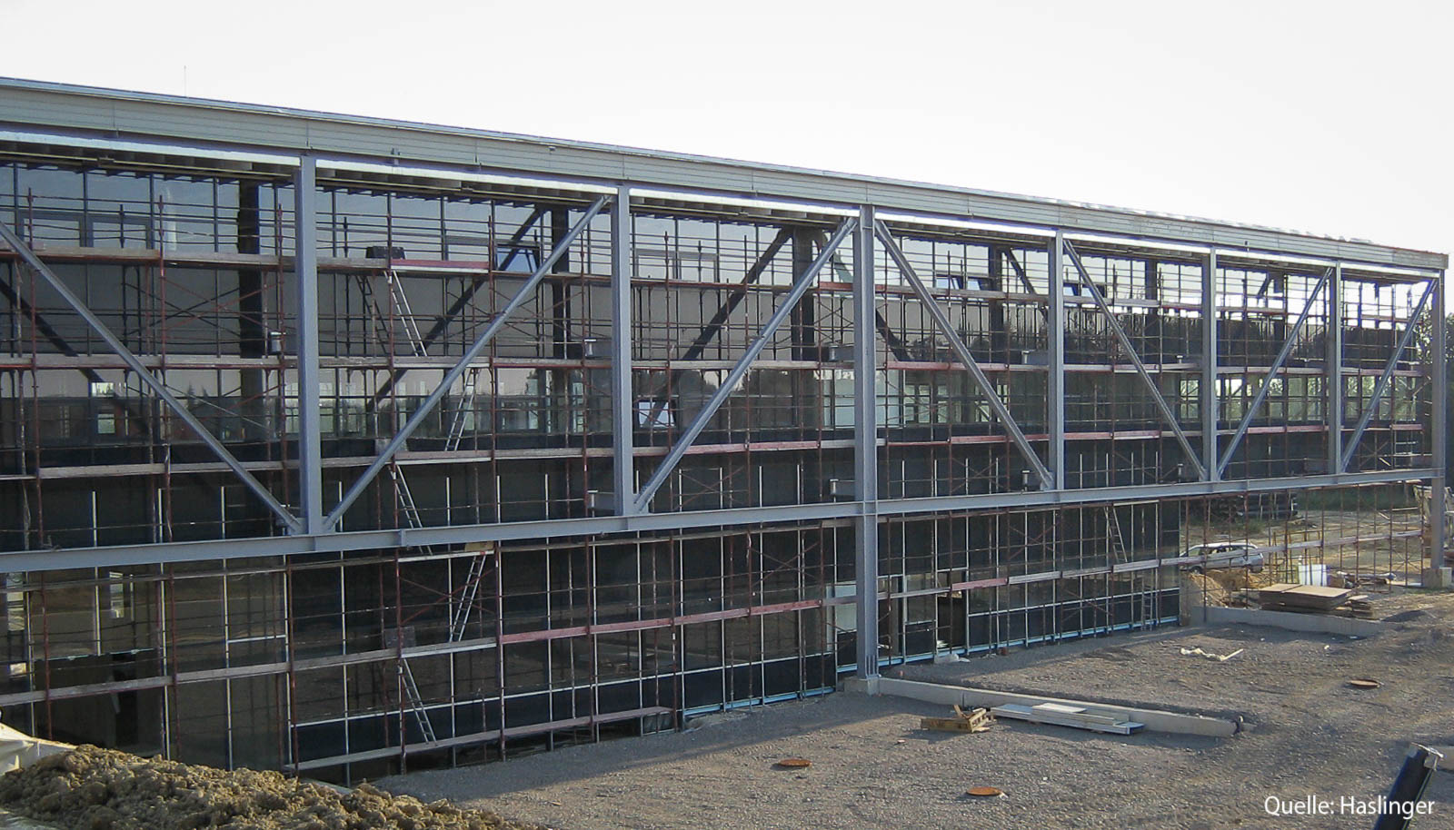 Am neuen Fertigungs- und Logistikstandort der Fronius GmbH in Sattledt errichtete HASLINGER STAHLBAU in nur 8 Wochen eine neue Montagehalle.