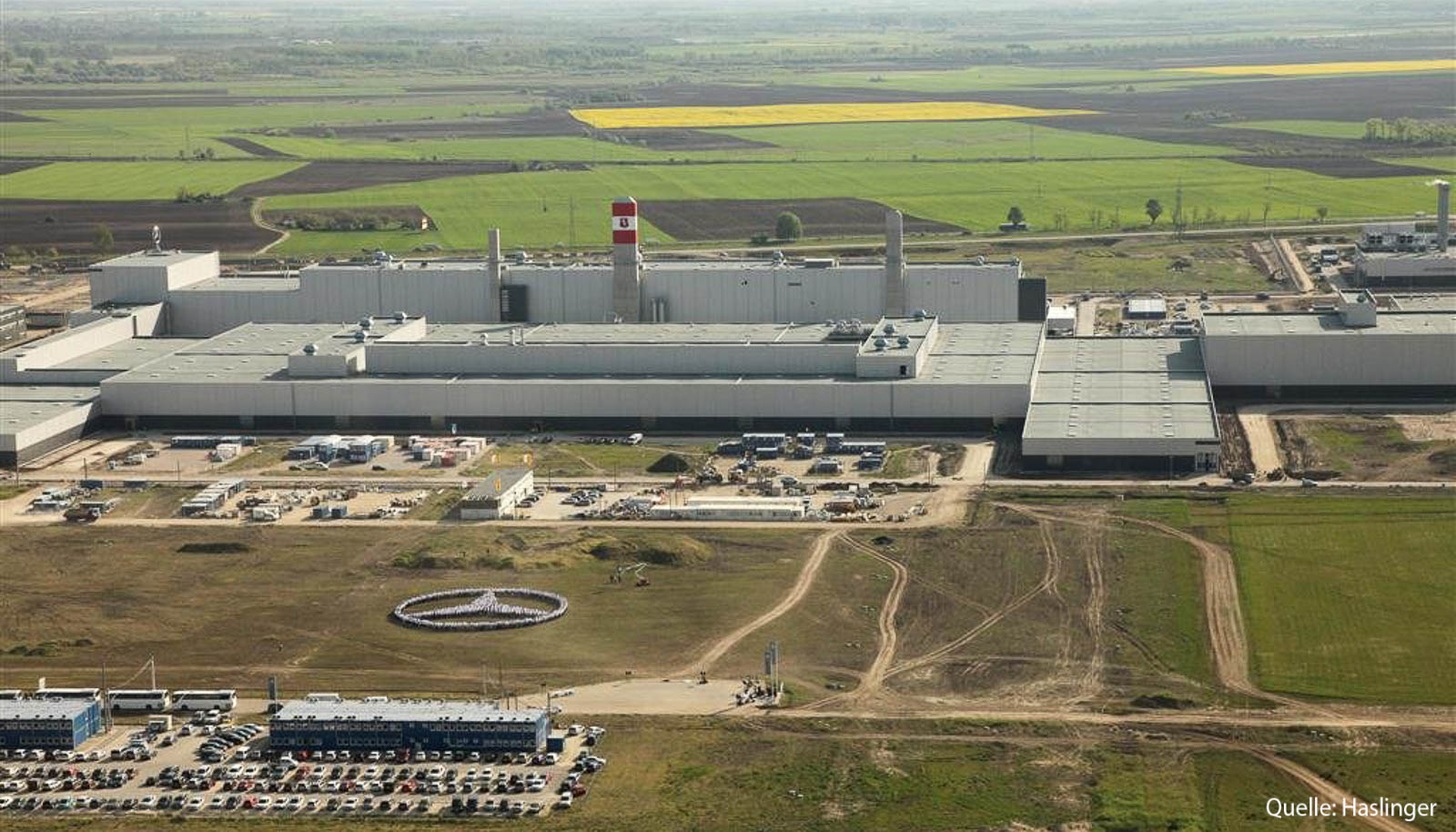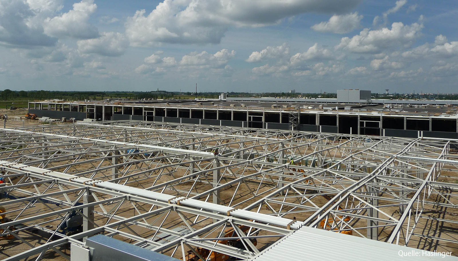 HASLINGER STAHLBAU errichtete für Mercedes Benz die Hallendächer für das Dienstleistungszentrum, die Rohbau- und Montagehalle, die Kranbahnträger des Presswerks sowie diverse Förderbrücken.