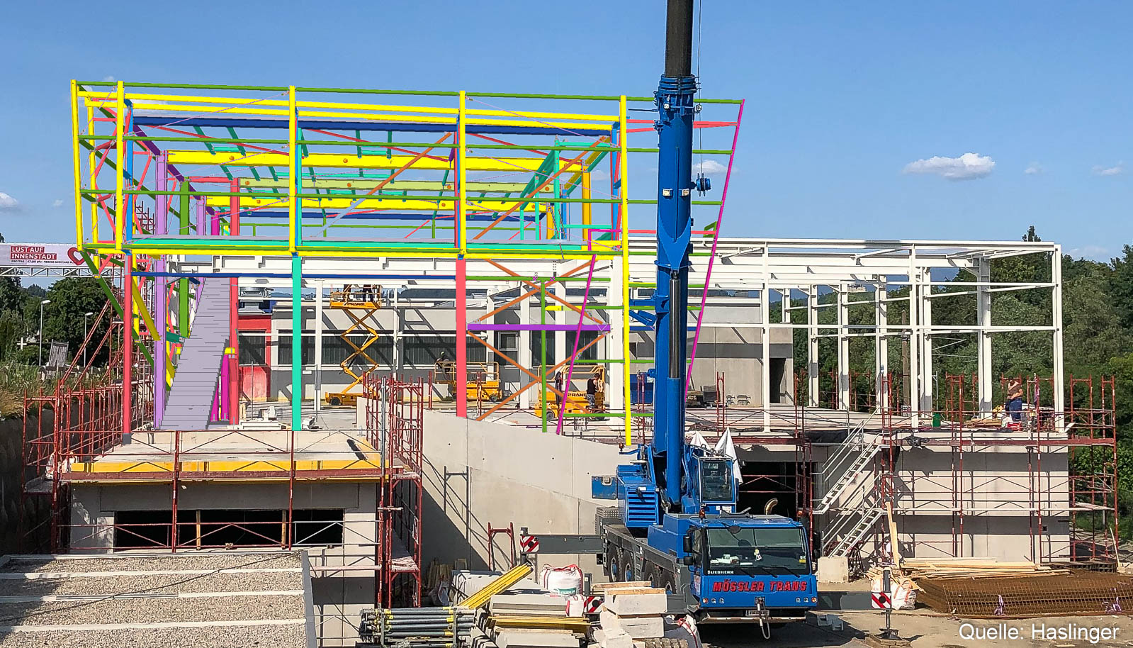 Im Auftrag der Karosserie PUCK GmbH lieferte und montierte HASLINGER STAHLBAU eine Stahlkonstruktion für die Erweiterung der bestehenden Karosseriewerkstätte. Der Auftragsumfang umfasste neben der tragenden Stahlkonstruktion auch die gesamte Dacheindeckung als Flachdachaufbau sowie die raumabschlussbildenden Fassadenbekleidungen aus Mineralwollpaneelen.