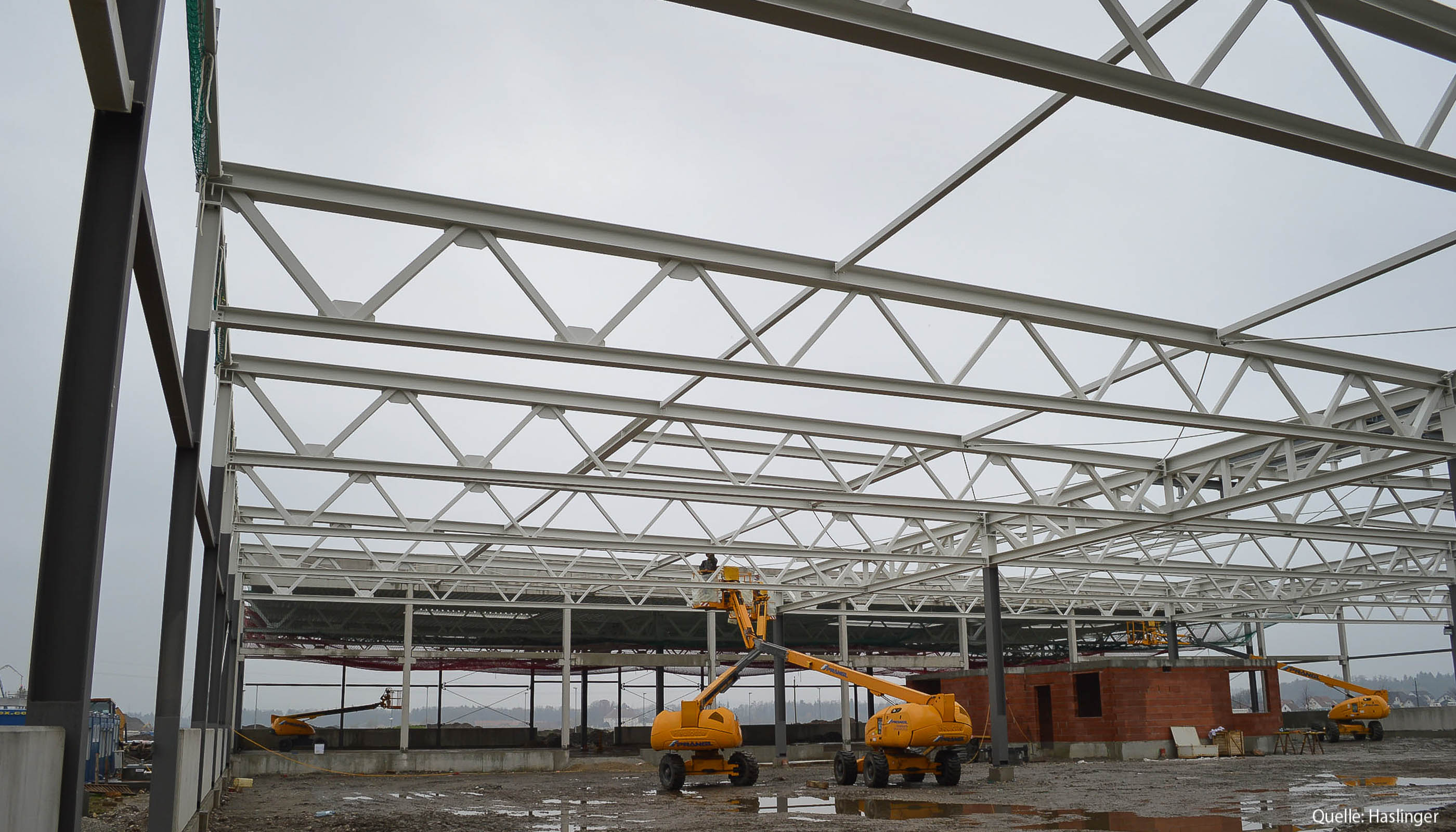 Im September 2014 wurde HASLINGER STAHLBAU mit der Errichtung der Hallenkonstruktion beauftragt.