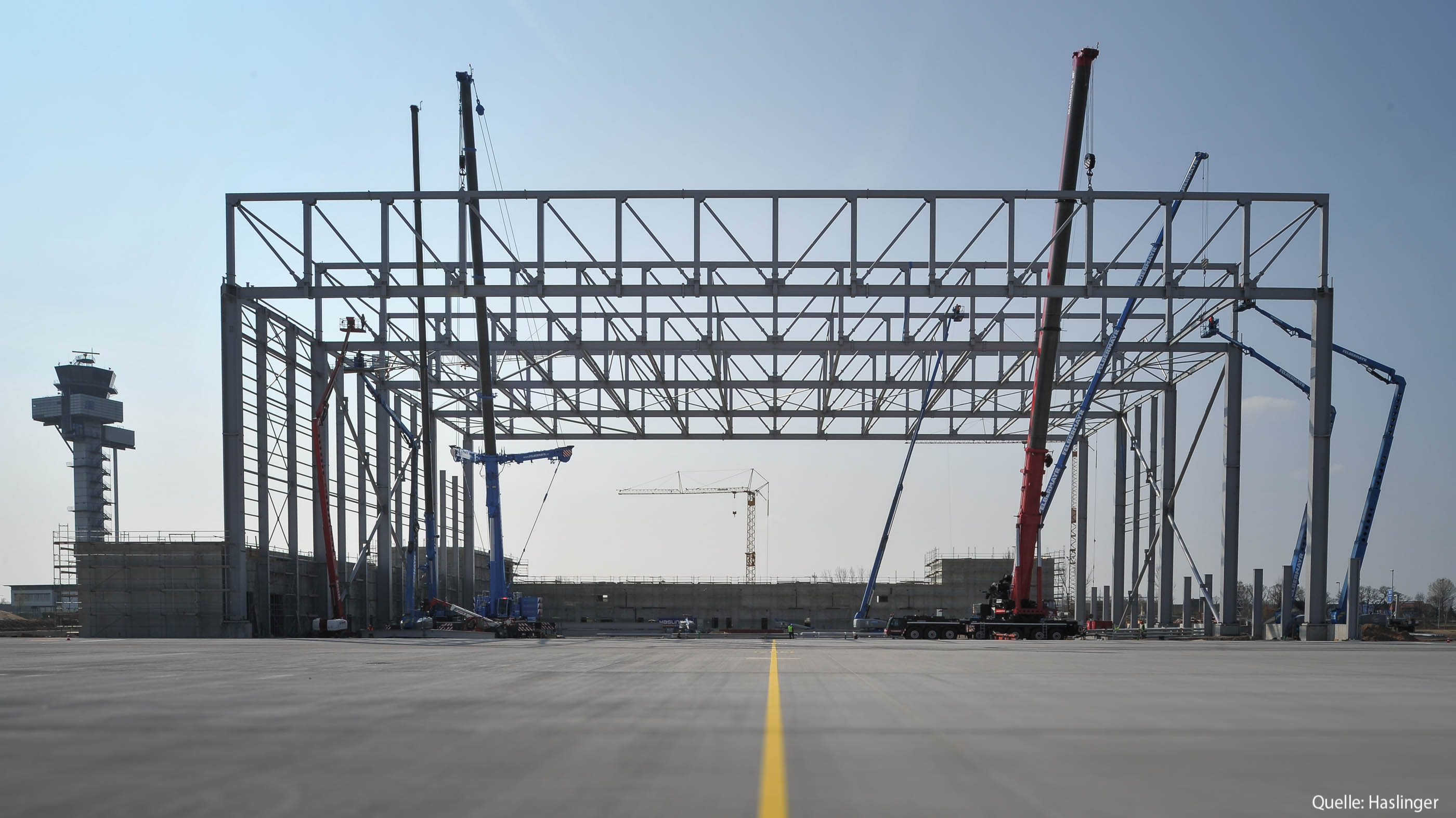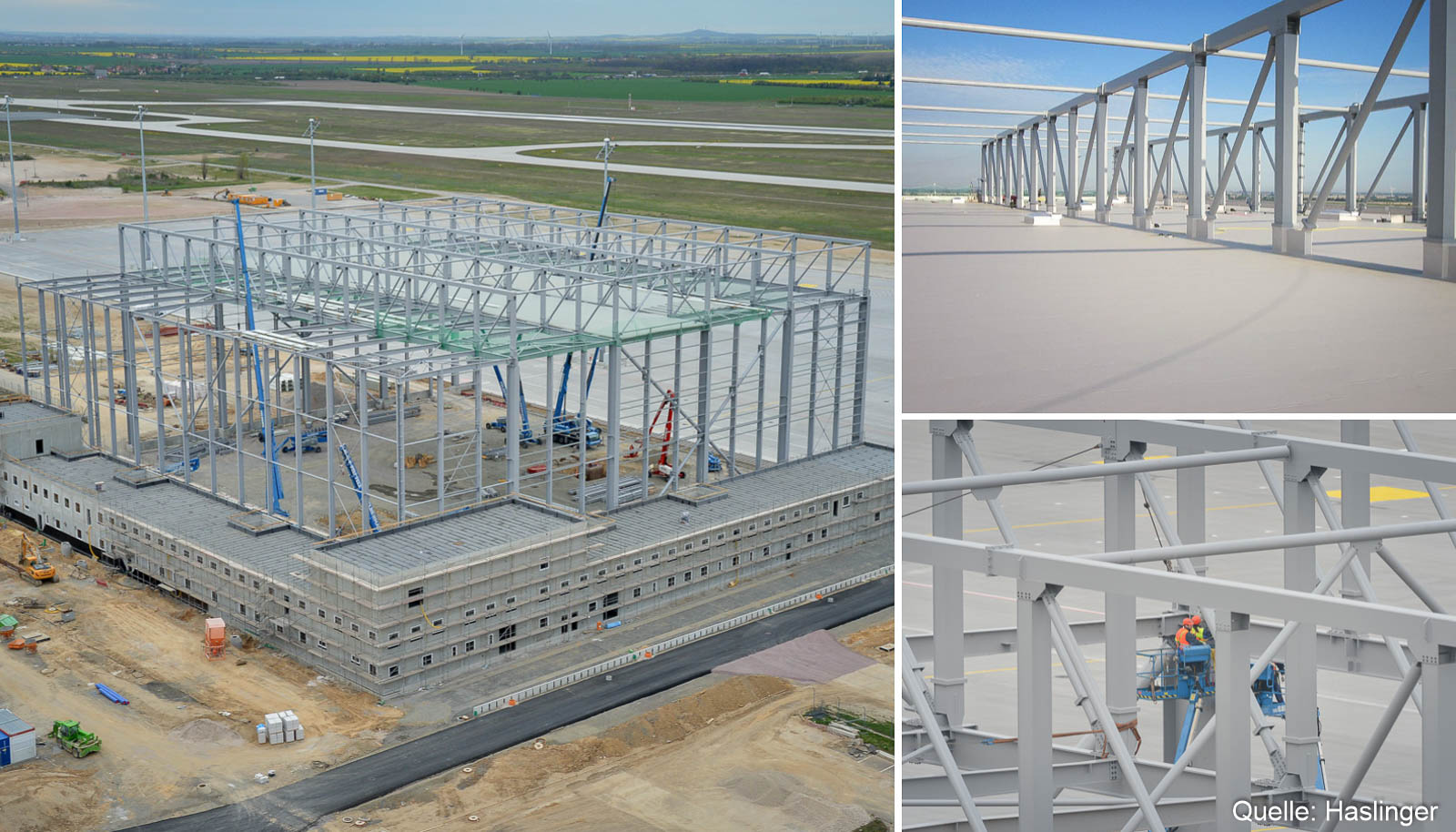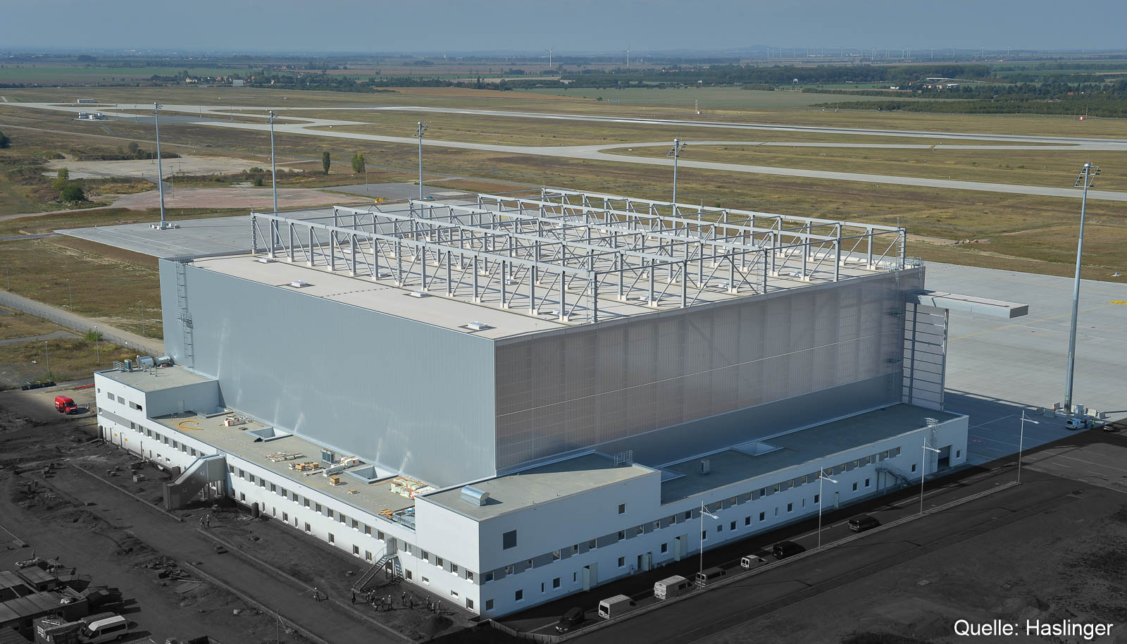 Der Wartungshangar Apron 3 am Flughafen in Leipzig ist ein Beispiel für die effiziente Realisierung eines Projektes durch Knowhow, exakte Planung und präzise Qualitätsarbeit. 2.000 to Gewicht auf ca. 10.000 m² Fläche - das HASLINGER STAHLBAU-Montageteam konnte alle Herausforderungen mit Bravour meistern.