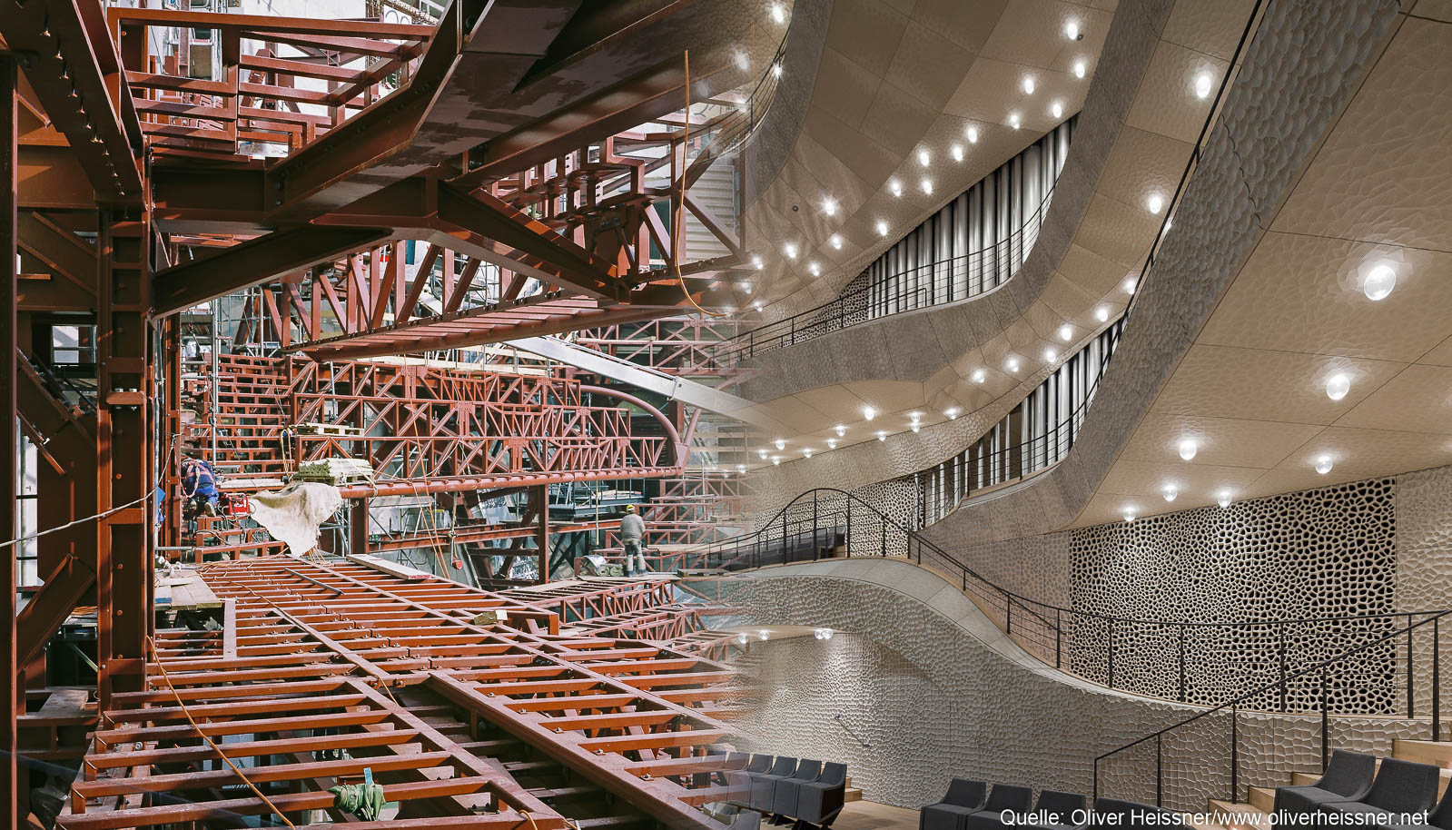 HASLINGER STAHLBAU hat mit der Stahltragkonstruktion für den Großen Konzertsaal neben dem Kleinen Konzertsaal sowie der Treppe im Foyer praktisch das Herzstück der Elbphilharmonie konstruiert, gefertigt, geliefert und montiert.