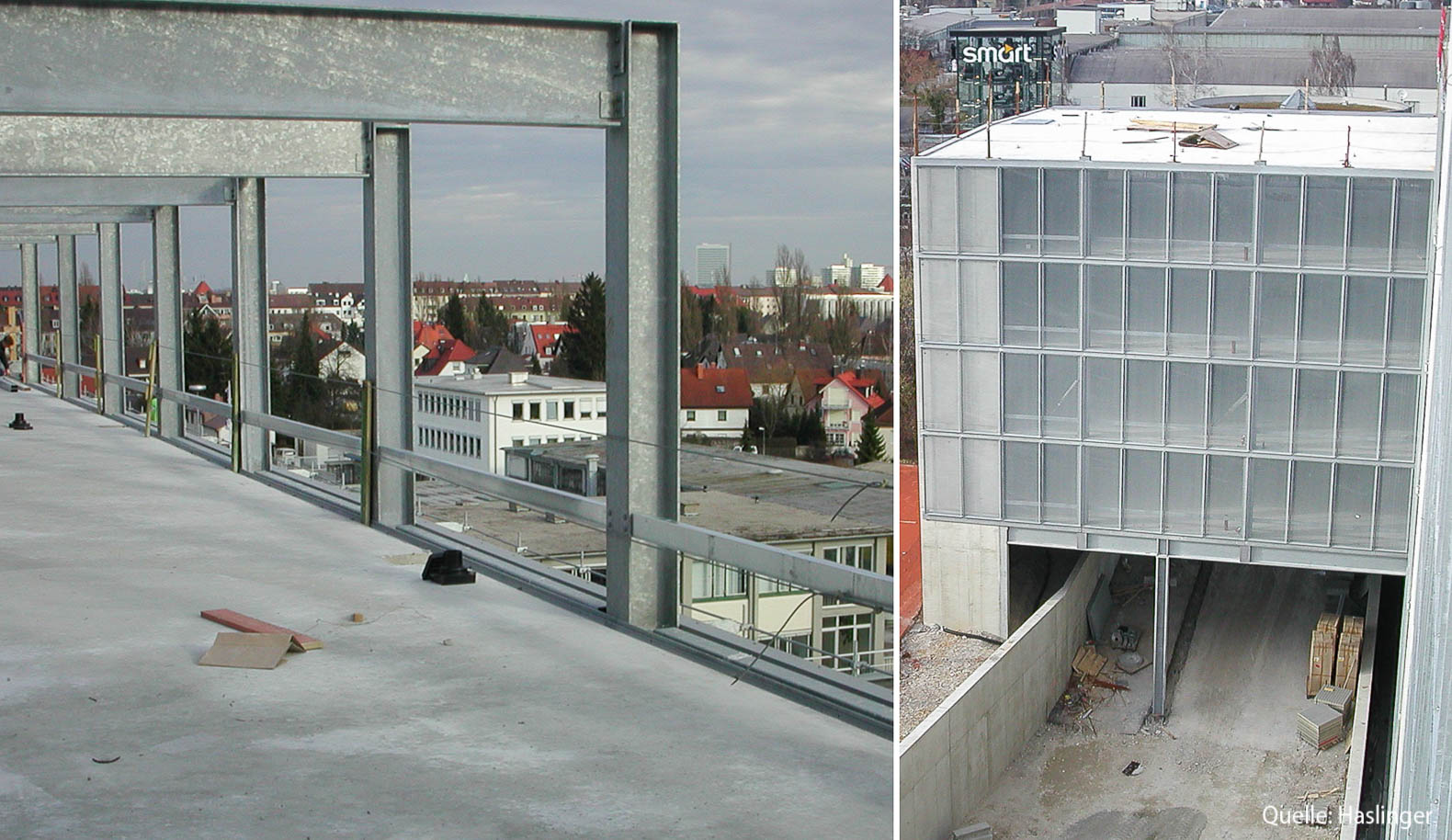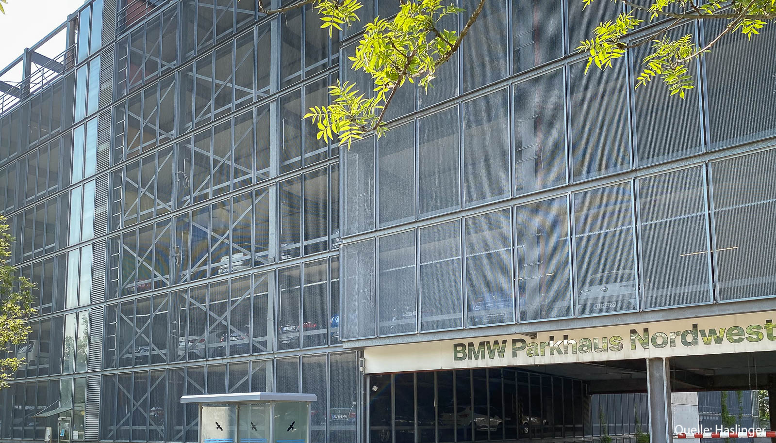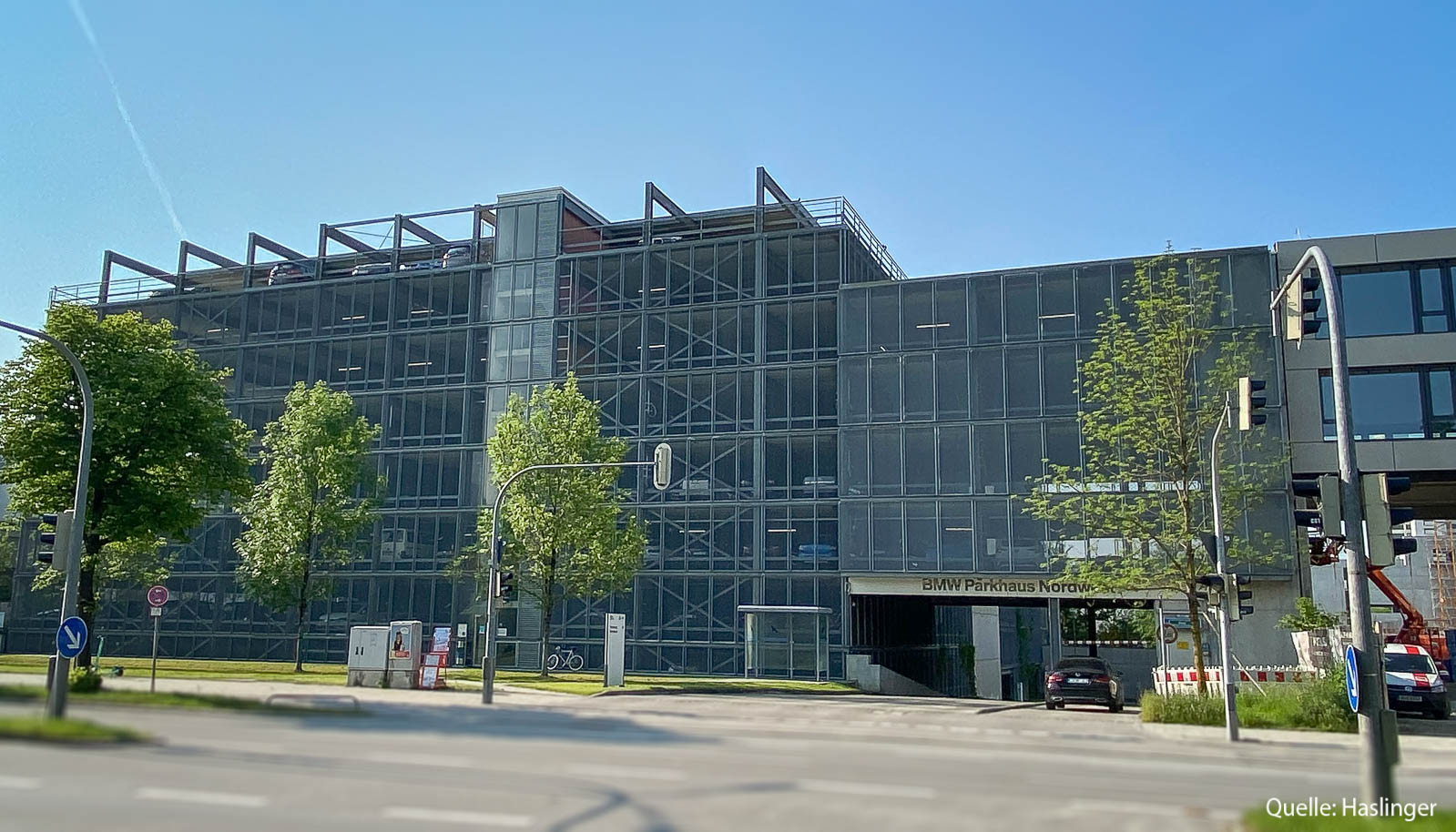 2002 errichtete HASLINGER STAHLBAU ein Mitarbeiterparkhaus für BMW in München.