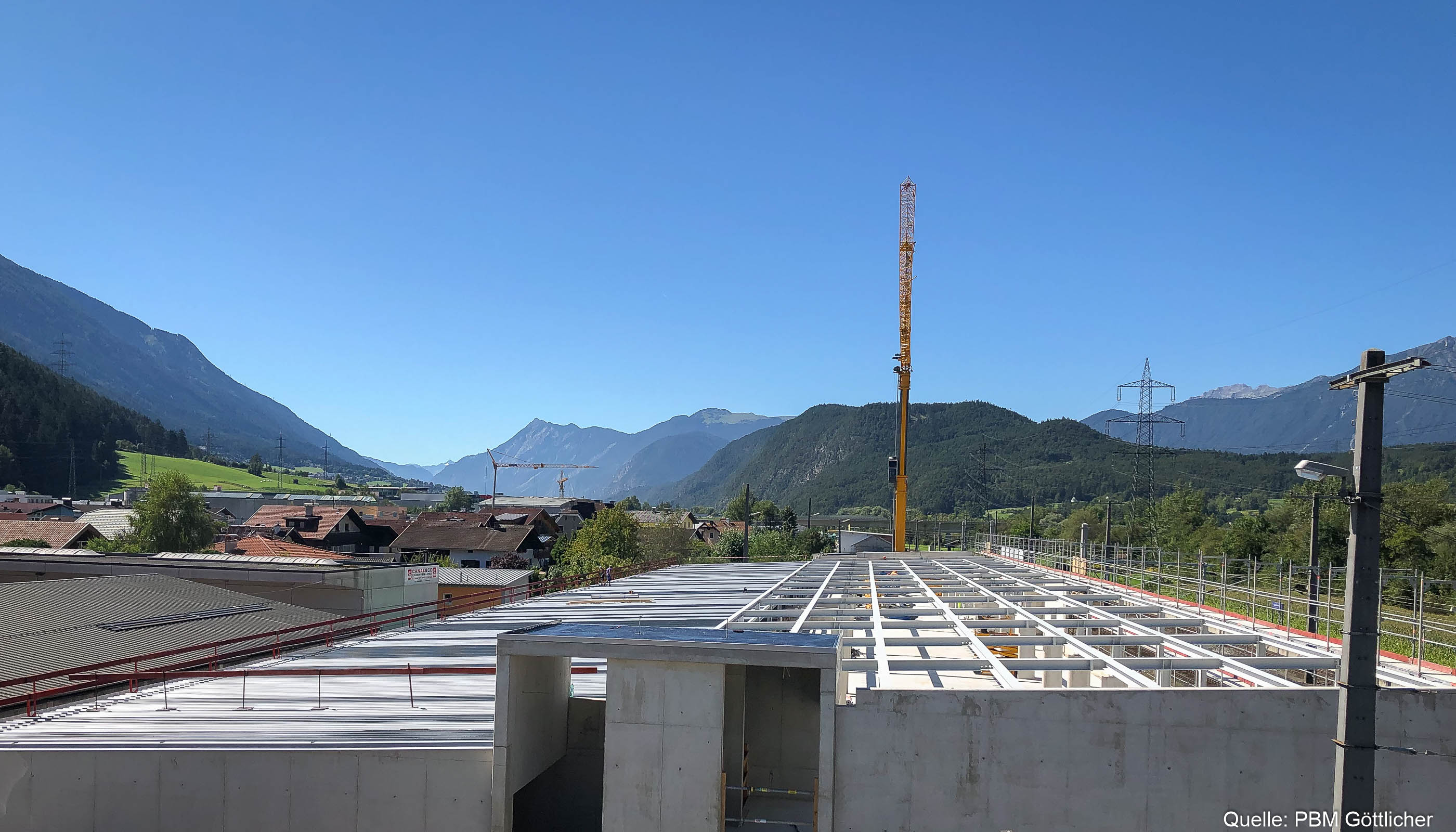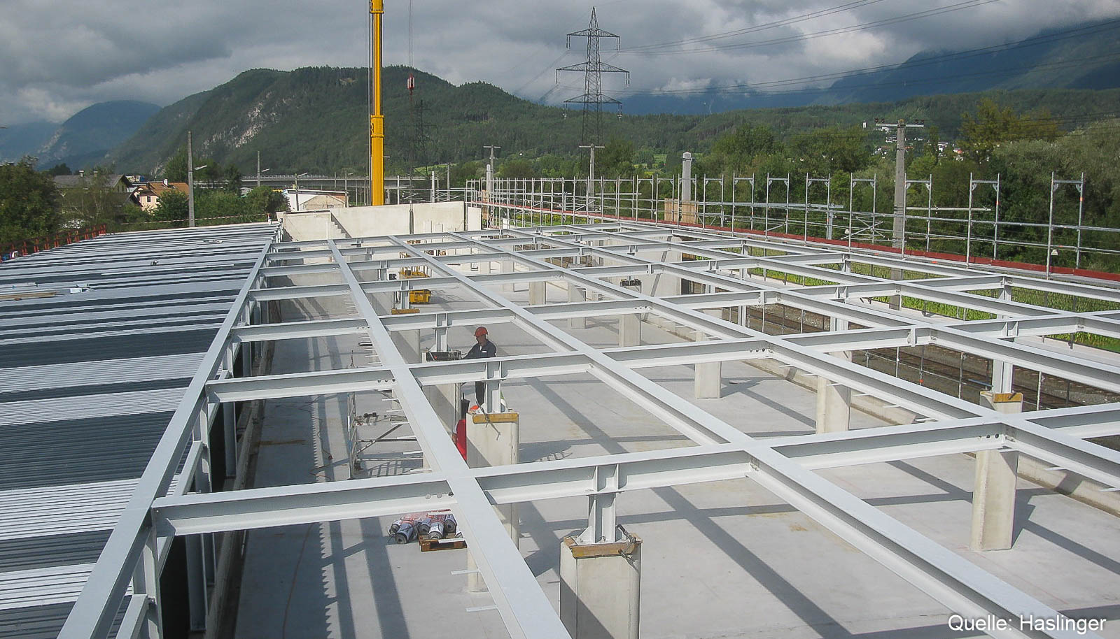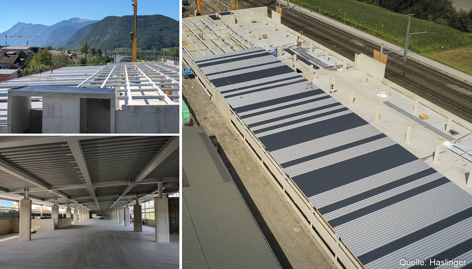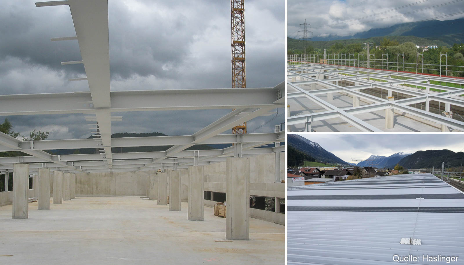 HASLINGER STAHLBAU konnte diese Dachkonstruktion unter beengten Platzverhältnissen in kurzer Zeit montieren. Eine besondere Erschwernis war dabei der Gefahrenbereich der angrenzenden Fahrstrecke der ÖBB.