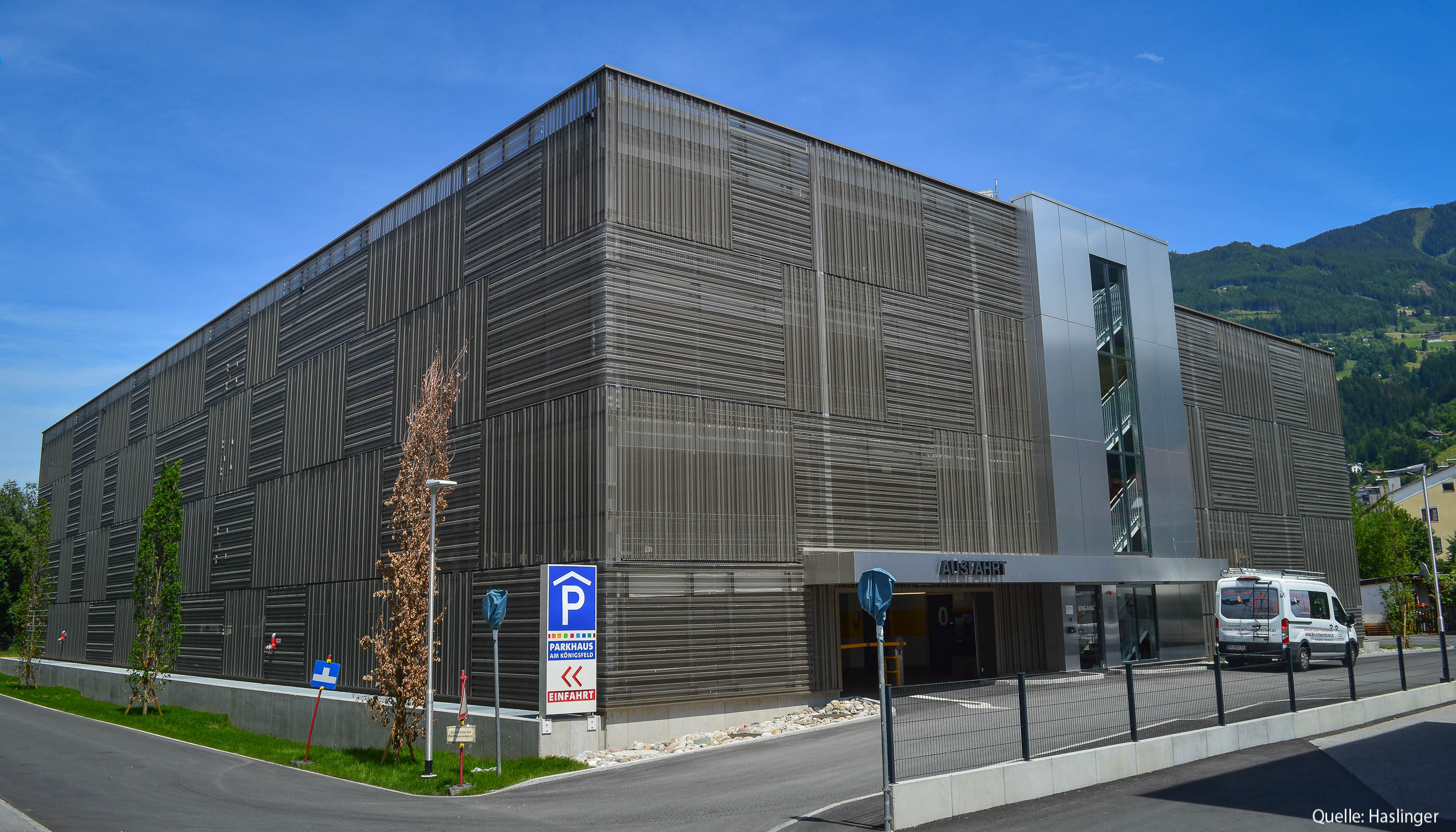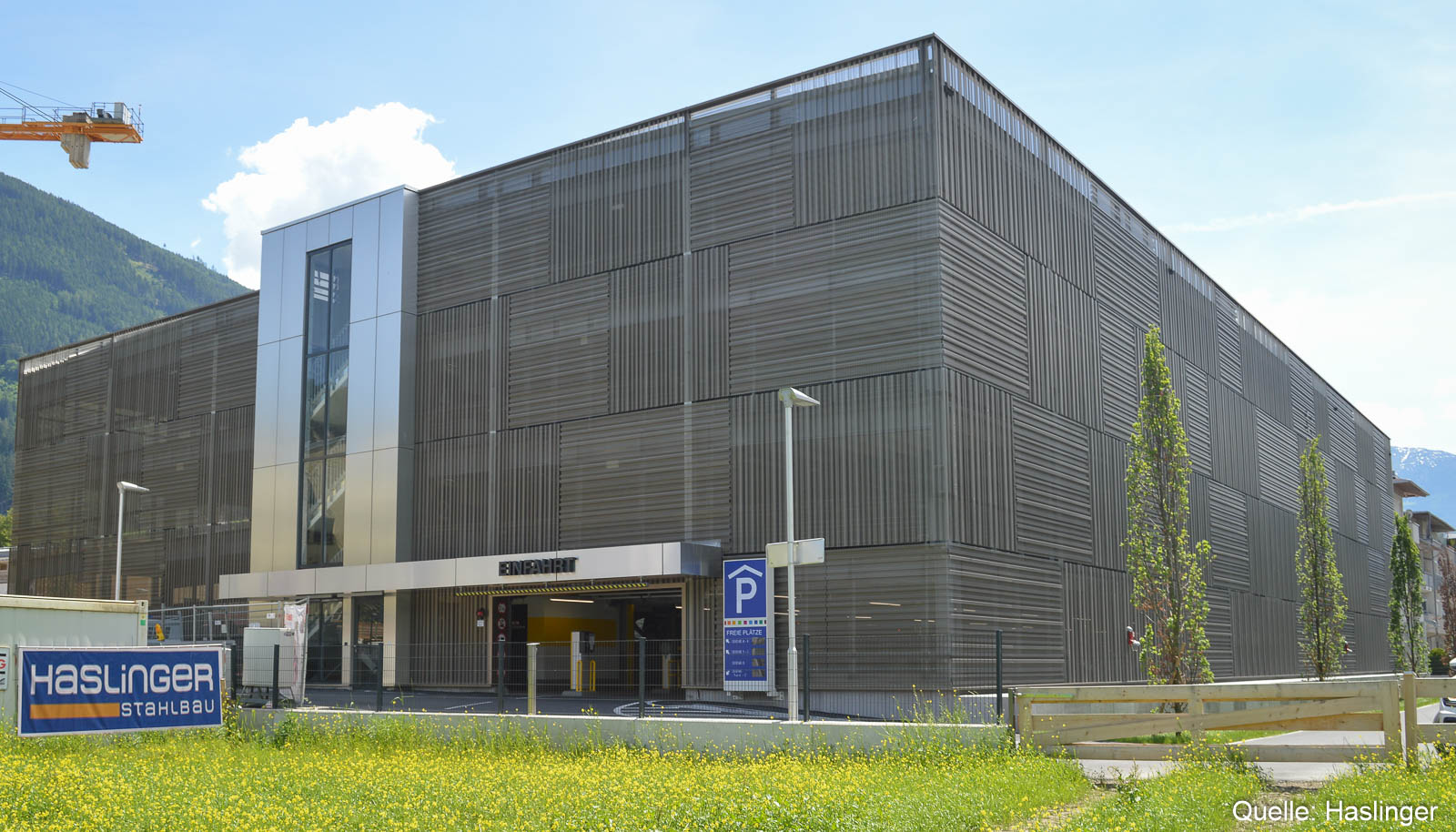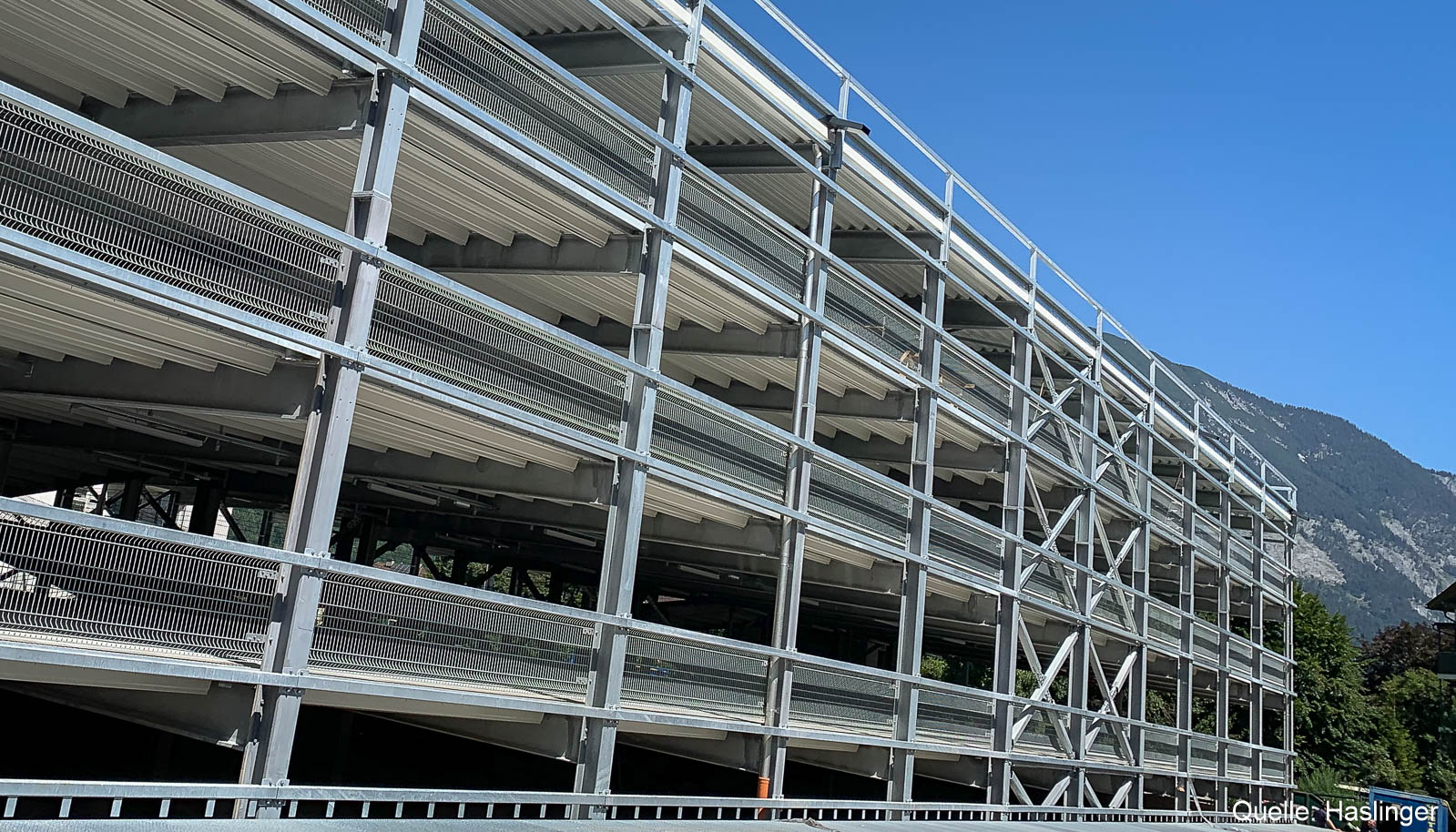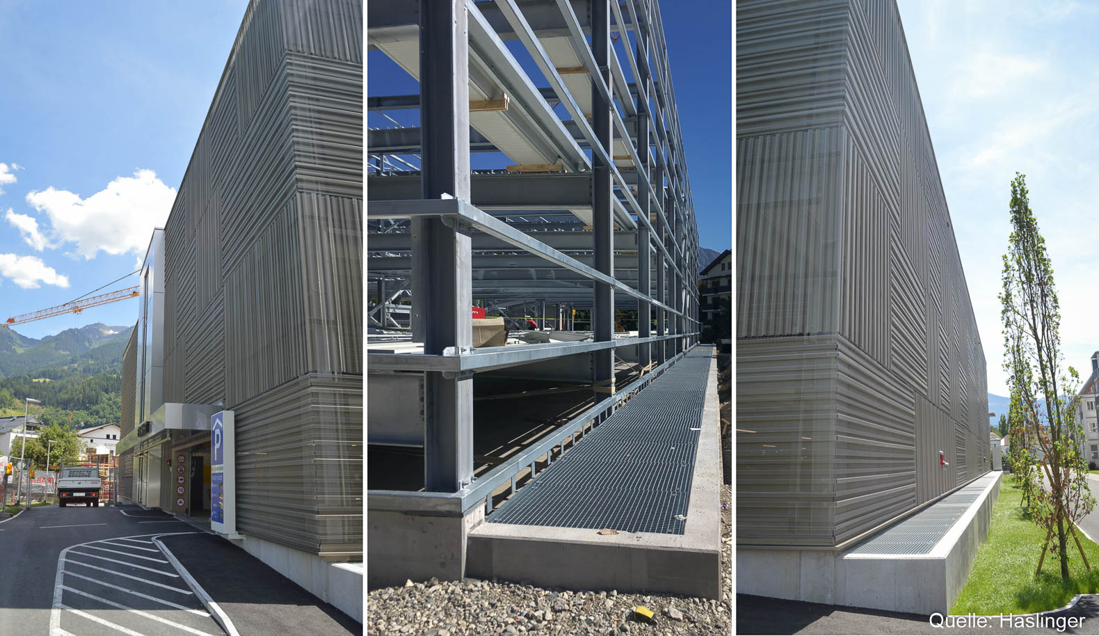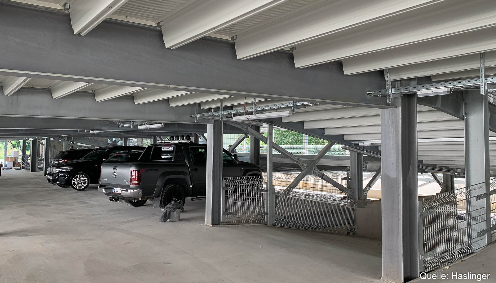 Zum Leistungsumfang von HASLINGER STAHLBAU gehörten auch Additivbleche und eine Integra-PW-Parkhausabsturzsicherung.