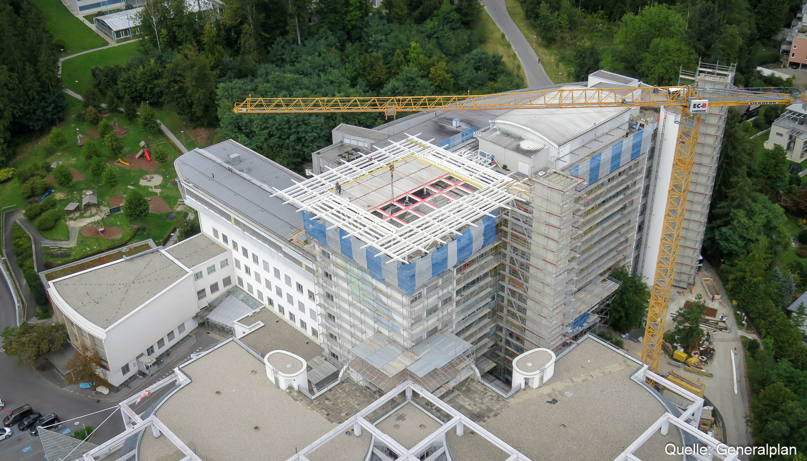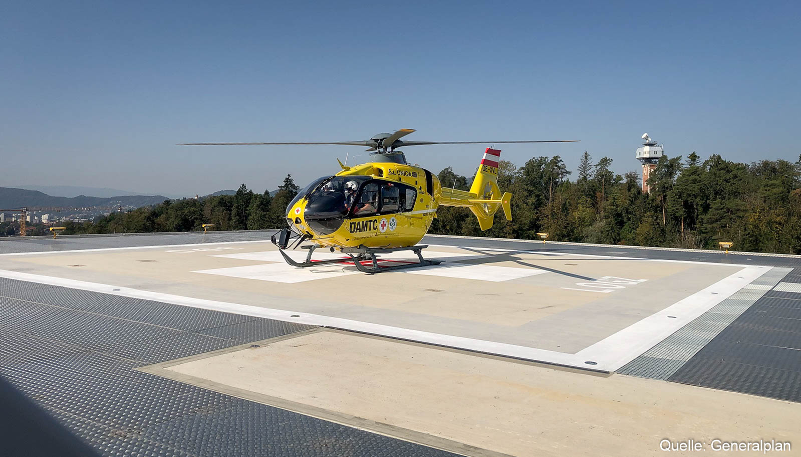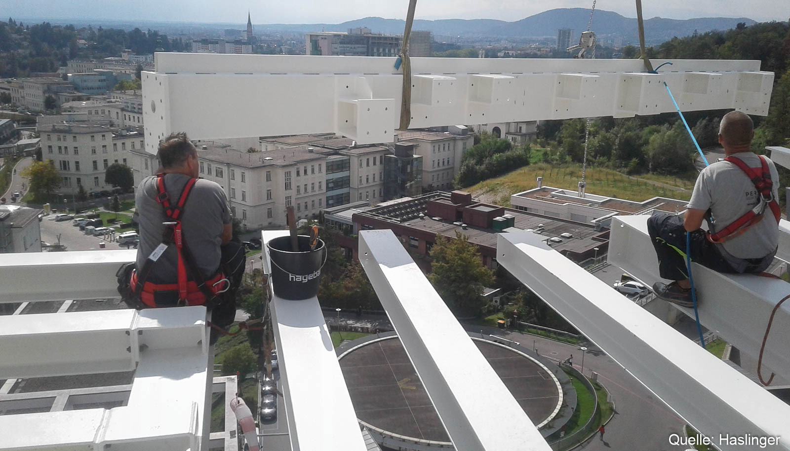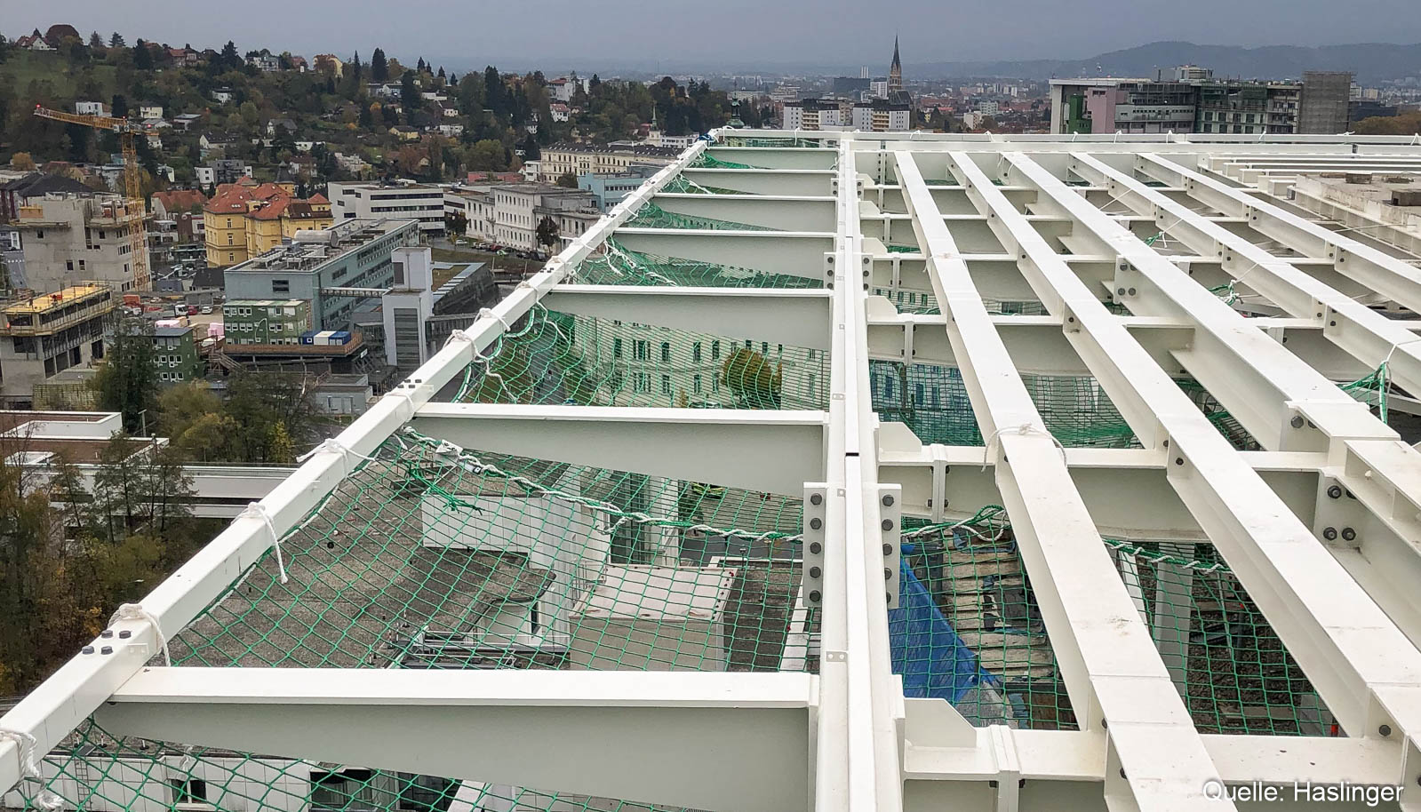 HASLINGER STAHLBAU errichtete auf dem Bestandsgebäude der Kinderklinik am Gelände des LKH Graz einen Hubschrauberlandeplatz unter laufendem Krankenhausbetrieb.