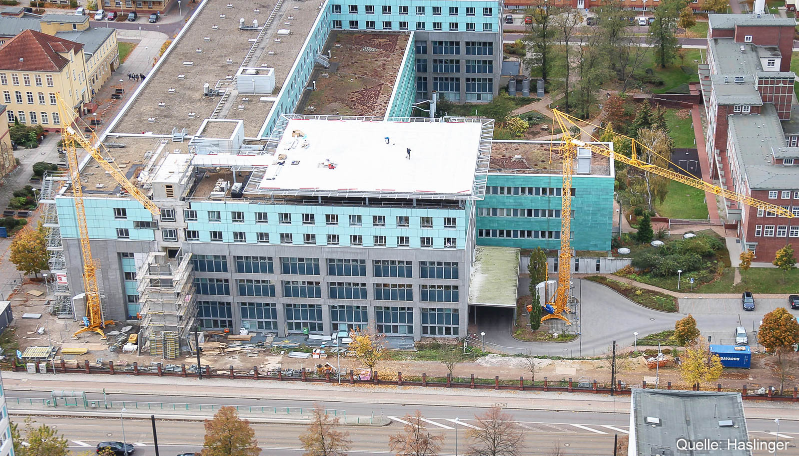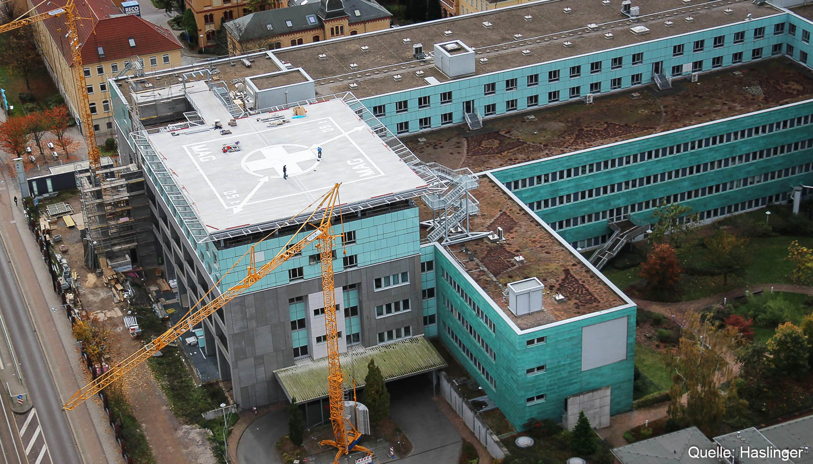 HASLINGER STAHLBAU errichtete für die Bayards Aluminium Constructies B.V./Niederlande, einem international führenden Unternehmen für Spezialprodukte, aus Aluminium die Stahlunterkonstruktion für den Hubschrauberlandeplatz in Magdeburg.