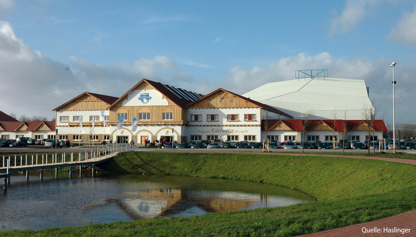 In Wittenburg, genau zwischen Berlin und Hamburg, errichtete HASLINGER STAHLBAU nicht nur die beeindruckende Skihalle, sondern war auch als Generalunternehmer für die größte Indoor-Skianlage Europas verantwortlich.